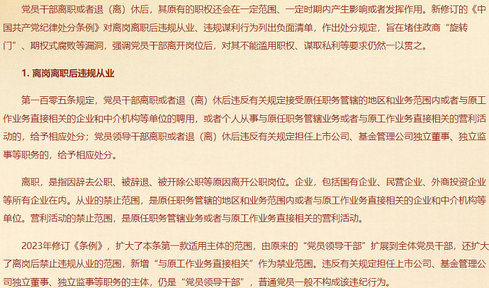 每日一課丨黨員干部離崗離職后違規從業、違規謀利的處分規定