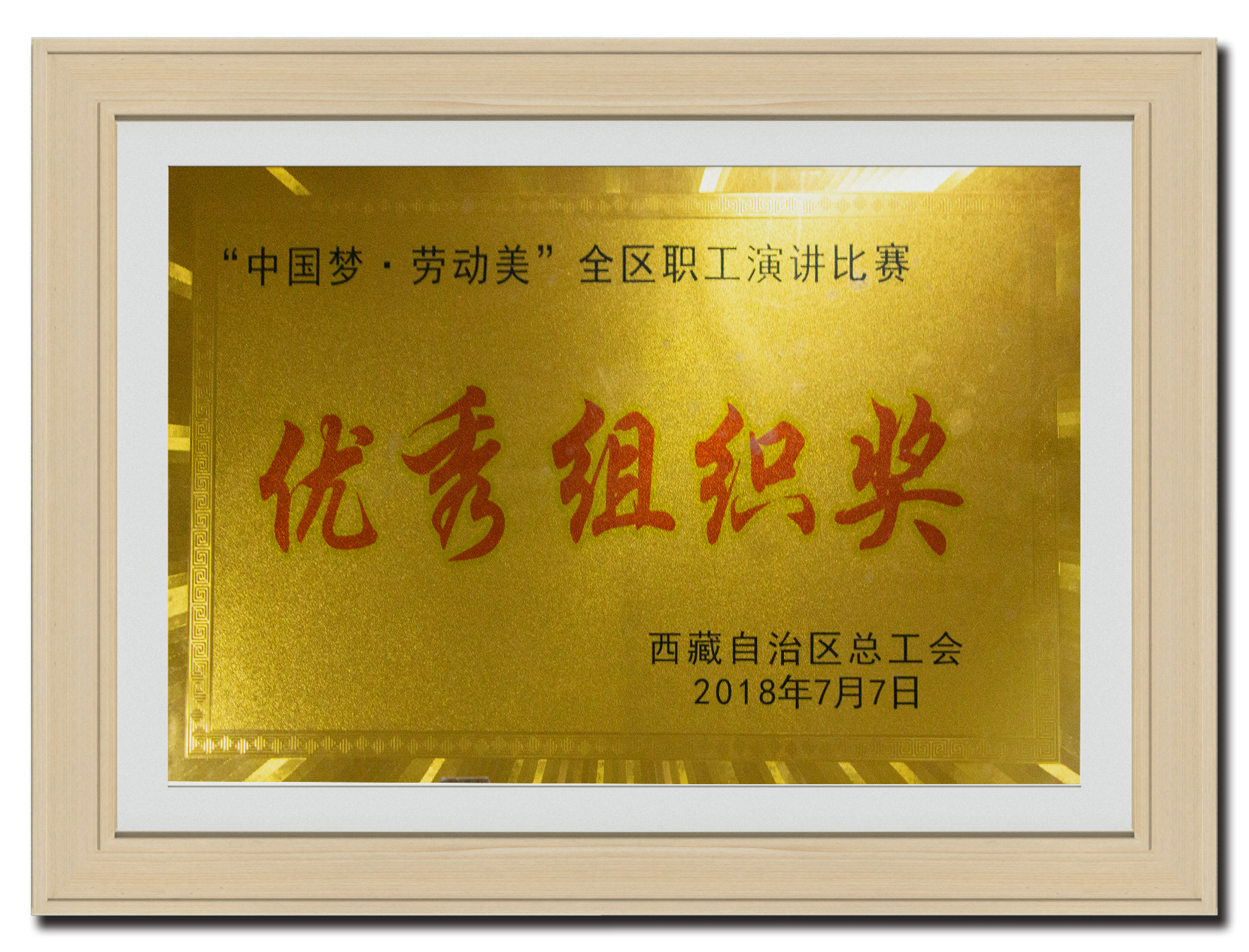 2018年7月 “中國夢·勞動美”全區職工演講比賽《優秀組織獎》