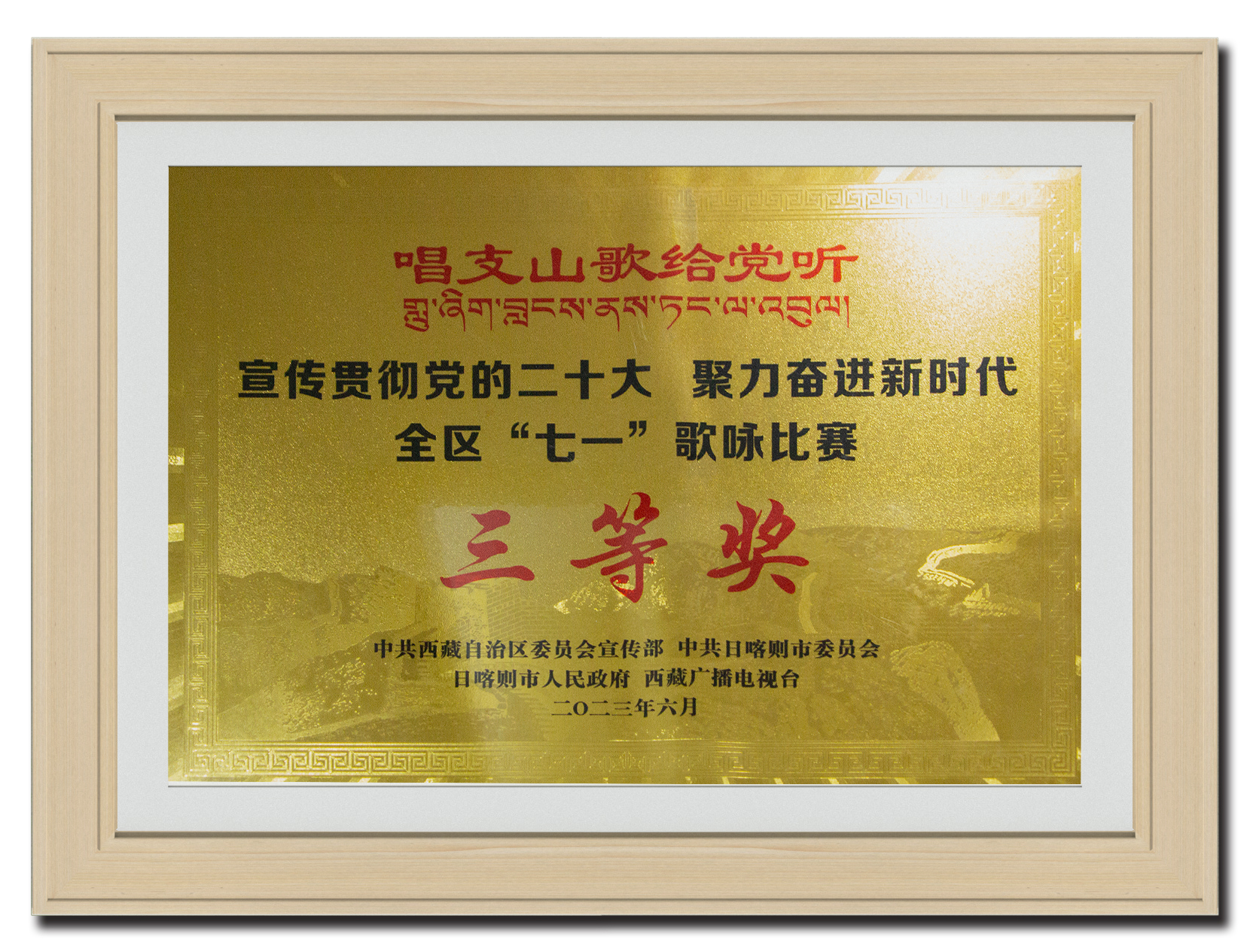 2023年6月 宣傳貫徹黨的二十大聚力奮進新時代全區“七一”歌詠比賽《三等獎》