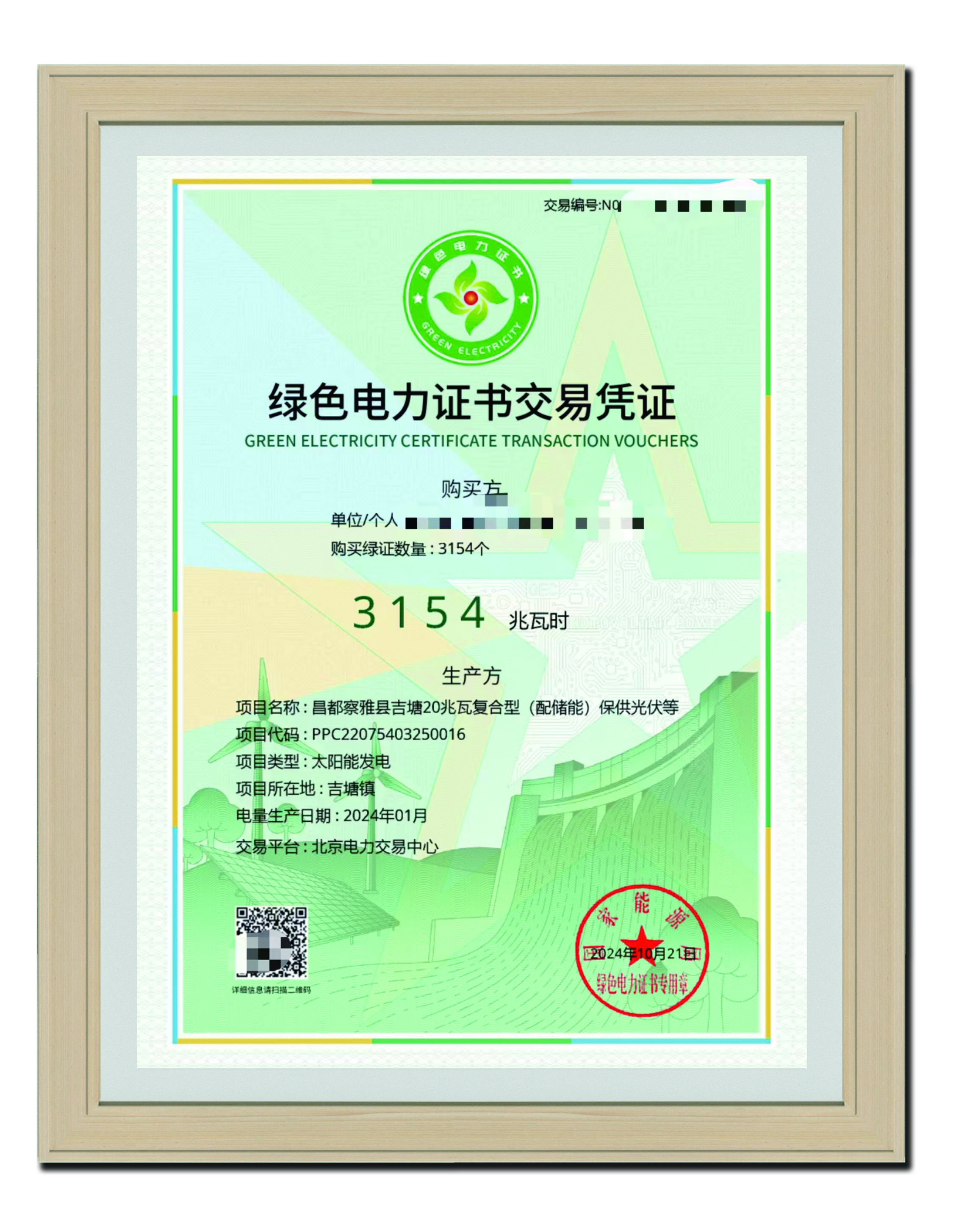 2024年10月21日 綠色電力證書交易憑證3154兆瓦時