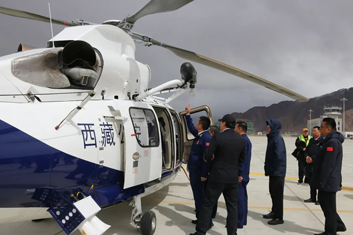 祁騰武指出,西藏各類自然災(zāi)害多發(fā)頻發(fā),消防應(yīng)急救援任務(wù)繁重,要堅(jiān)決貫徹落實(shí)黨中央和區(qū)黨委政府關(guān)于消防救援和通航產(chǎn)業(yè)發(fā)展的決策部署,堅(jiān)持人民至上、生命至上,聚焦穩(wěn)定、發(fā)展、生態(tài)、強(qiáng)邊“四件大事”,提高政治站位,立足職能定位,全力服務(wù)保障我區(qū)全任務(wù)、全地域、全要素應(yīng)急救援任務(wù)開展。一是要確保安全。消防應(yīng)急救援的專業(yè)性很強(qiáng)、危險(xiǎn)系數(shù)也很高,要樹牢安全發(fā)展理念,增強(qiáng)紅線意識(shí),堅(jiān)持底線思維,落實(shí)好安全生產(chǎn)責(zé)任制,強(qiáng)化設(shè)備安全性能測試,常態(tài)化開展融合訓(xùn)練,確保救援裝備安全運(yùn)行。二是要深化合作。要立足航空消防救援方向,加強(qiáng)與自治區(qū)消防救援總隊(duì)、設(shè)備生產(chǎn)制造企業(yè)、科研機(jī)構(gòu)的深度合作,統(tǒng)籌資源力量,創(chuàng)新工作模式,做好經(jīng)驗(yàn)總結(jié)推廣,力爭把不斷涌現(xiàn)的應(yīng)急救援新技術(shù)、新裝備運(yùn)用到全區(qū)應(yīng)急救援各領(lǐng)域。三是要加快落地。AC312E消防救援型直升機(jī)的引進(jìn)使用,區(qū)黨委政府高度關(guān)注,各族群眾翹首以盼,合作各方要積極對接、共同努力,科學(xué)謀劃預(yù)算編報(bào)、需求論證、裝備采購、國家航空器報(bào)備各項(xiàng)工作,確保盡早交付運(yùn)行、盡早發(fā)揮效能,切實(shí)為維護(hù)全區(qū)各族人民群眾生命財(cái)產(chǎn)安全和經(jīng)濟(jì)社會(huì)高質(zhì)量發(fā)展保駕護(hù)航。