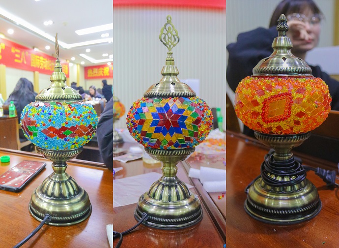 活動中,集團公司工會精心準備了永生玫瑰抱抱熊、土耳其琉璃燈、掐絲琺瑯畫等豐富多樣的手工DIY材料,并特邀經(jīng)驗豐富的手工藝術(shù)指導老師,為女職工們提供專業(yè)而細致的指導。在專業(yè)老師的引領(lǐng)下,女職工們發(fā)揮自己的創(chuàng)造力與想象力,經(jīng)過一番精心制作,最終呈現(xiàn)出一件件精美絕倫的藝術(shù)品。
