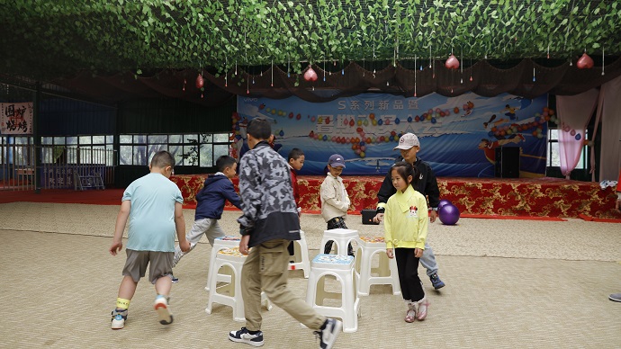 (“開投寶貝”搶凳子 達娃攝)