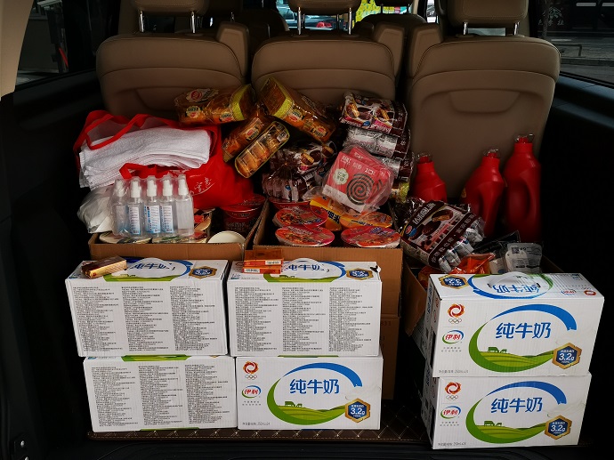 9月16日,邦錦花園酒店獲知集團公司下沉社區的9名志愿者缺乏必要的生活物資和防疫物資。在酒店自身防疫物資匱乏的情況下,主動向集團公司下沉社區志愿者免費配送了價值3000余元的方便面、牛奶、火腿腸、面包、醫用酒精等生活物資和防疫物資,助力打贏疫情防控阻擊戰。