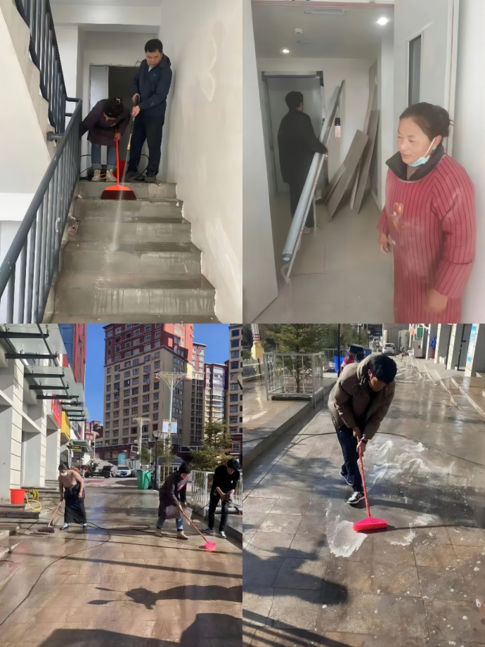 活動(dòng)中,物業(yè)公司各項(xiàng)目部干部職工紛紛化身“清潔能手”“文明衛(wèi)生使者”,發(fā)揚(yáng)不怕臟、不怕累、不怕苦的精神,對(duì)各生產(chǎn)生活區(qū)域進(jìn)行全面大清掃,竭力做到所到之處無(wú)盲區(qū)、無(wú)死角。大家齊心協(xié)力、干勁十足,一片熱火朝天的景象。