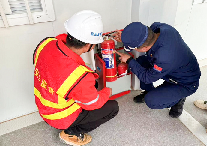 演練結束后,消防人員帶領項目管理人員對辦公區、宿舍、食堂等區域進行防火安全巡查,通過逐個檢查和詳細講解,進一步排除火災安全隱患。