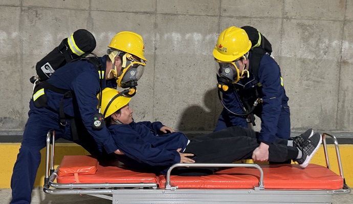 此次競賽分為理論安全知識競賽和技能實操兩個部分。通過理論知識競賽,培養員工學習安全知識的積極性、主動性和創造性,達到“人人要安全、個個會應急”的目標,提高從業人員安全生產及突發事件的應對能力。技能實操競賽,通過佩戴正壓式呼吸器50米內擔架救人、兩人2盤消防水帶連接回收等項目,全方位考核參賽選手應急救援和協作能力。