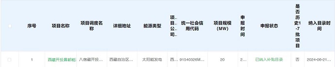 6月21日,國家電網公布2024年第六批列入可再生能源發電補貼項目名單,其中西藏開投八宿光伏電站發電項目成功納入國家光伏電價補貼目錄。