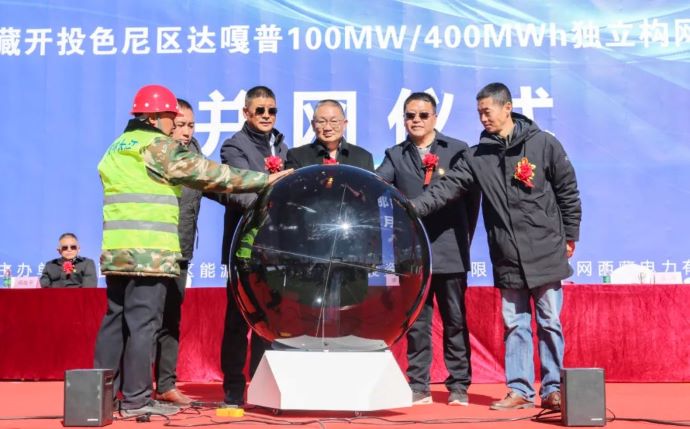 西藏開投色尼區(qū)達(dá)嘎普獨立構(gòu)網(wǎng)型儲能項目并網(wǎng)儀式現(xiàn)場。達(dá)娃 攝