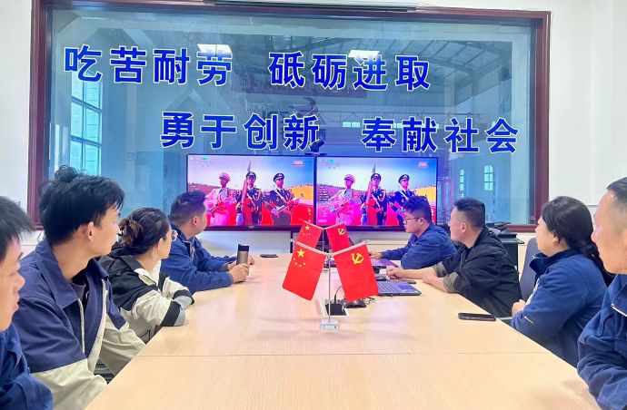 直播開始,公司會議室里氣氛莊嚴肅穆,全體干部職工整齊就座,目光緊緊聚焦在屏幕上。當雄壯的國歌聲響起,大家紛紛起立,齊聲高唱,歌聲激昂而嘹亮,表達著對祖國的無限熱愛和對先烈的深切緬懷。直播中抗戰元素與新型裝備同臺亮相,如反法西斯抗戰歷程符號融入方陣編排、高超聲速武器首次展示等,讓員工深刻感受到“強國必須強軍”的時代內涵。戰旗方隊承載抗戰英模部隊的榮光,退役軍人職工集體起立敬禮,感嘆“先烈用生命換來的和平來之不易”。
