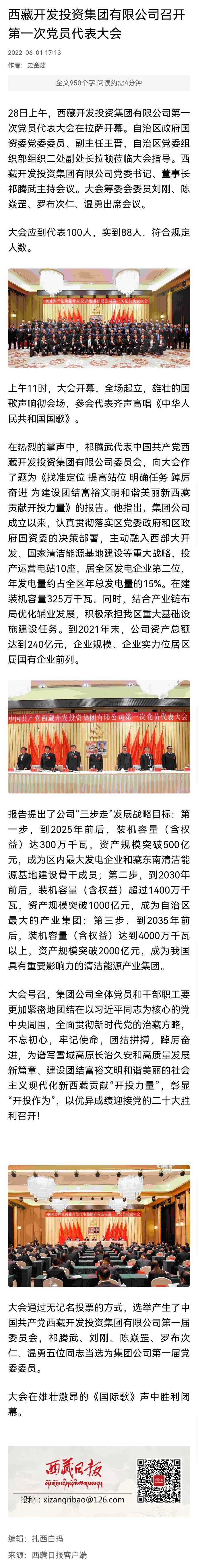 中國共產黨西藏開發投資集團有限公司 第一次黨員代表大會