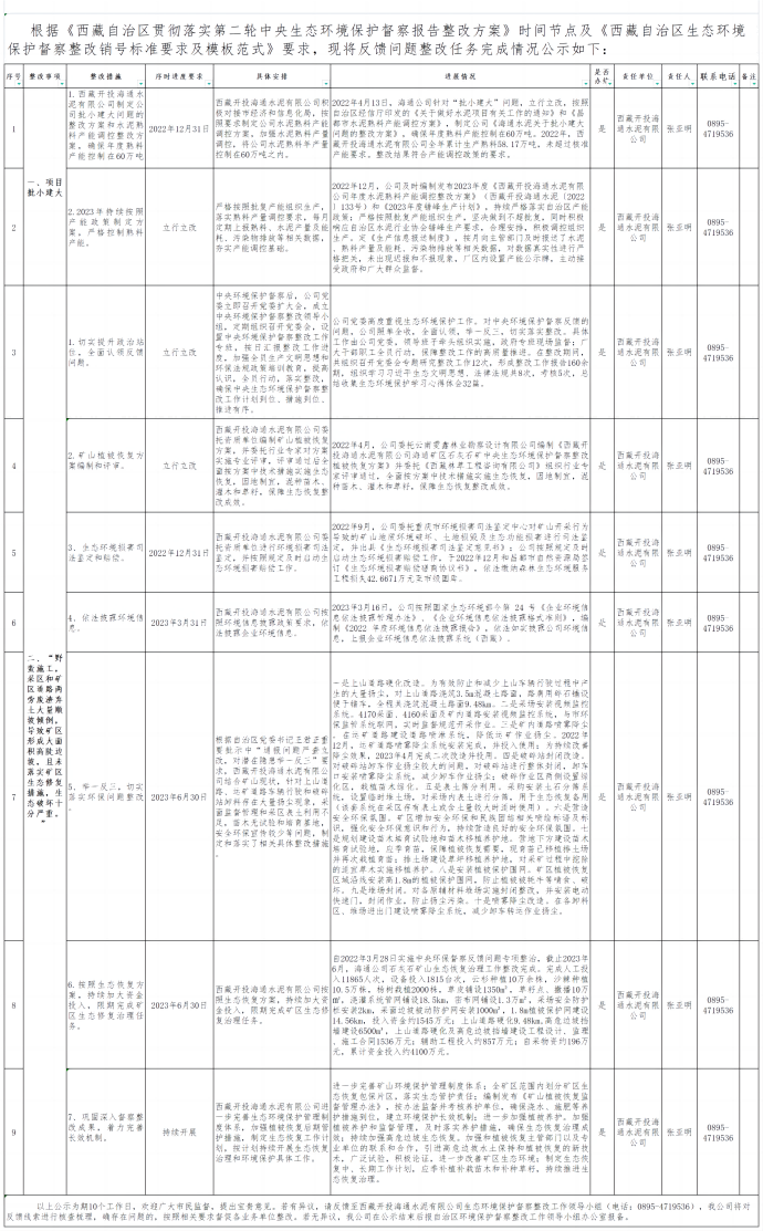西藏開投海通水泥有限公司關于第二輪中央生態環境保護督察反饋問題整改落實情況的公示