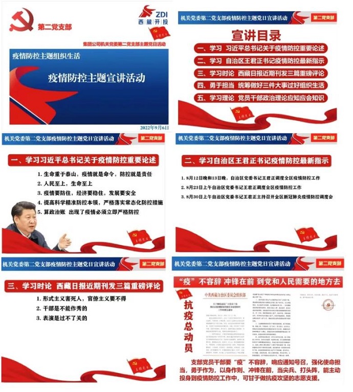 為貫徹落實區(qū)黨委和區(qū)政府國資委黨委近期工作部署、集團(tuán)公司黨委具體工作要求,結(jié)合疫情防控工作實際,9月6日下午,中共西藏開發(fā)投資集團(tuán)有限公司機(jī)關(guān)第二支部委員會組織全體黨員開展疫情防控主題黨日宣講活動。受疫情影響,活動以網(wǎng)絡(luò)視頻形式召開。集團(tuán)公司黨委委員、副總經(jīng)理、工會主席、機(jī)關(guān)黨委書記溫勇同志以普通黨員身份參加活動。