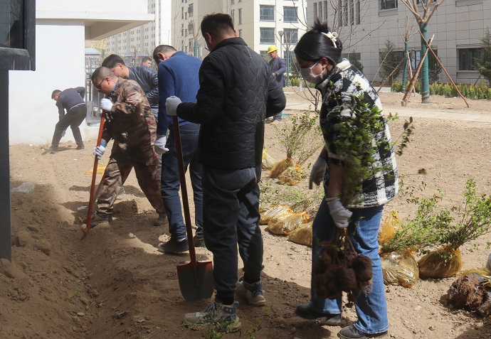 活動現(xiàn)場,在聽取工作人員講解植樹注意事項后,大家三五一組、分工協(xié)作,有的揮鍬鏟土、填苗澆水,有的培土圍堰、澆水灌溉,還有的清掃垃圾、搬運(yùn)雜物。現(xiàn)場氣氛活躍、組織有序,呈現(xiàn)出一片熱火朝天的忙碌景象。每道工序一絲不茍、認(rèn)真細(xì)致,展現(xiàn)了團(tuán)結(jié)協(xié)作、奮發(fā)向上的精神風(fēng)貌。