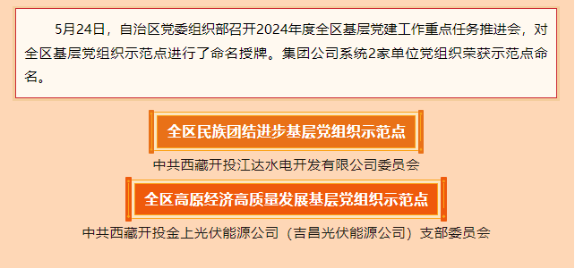 捷報傳來丨西藏開投這些黨組織被評為2023年度全區基層黨組織示范點