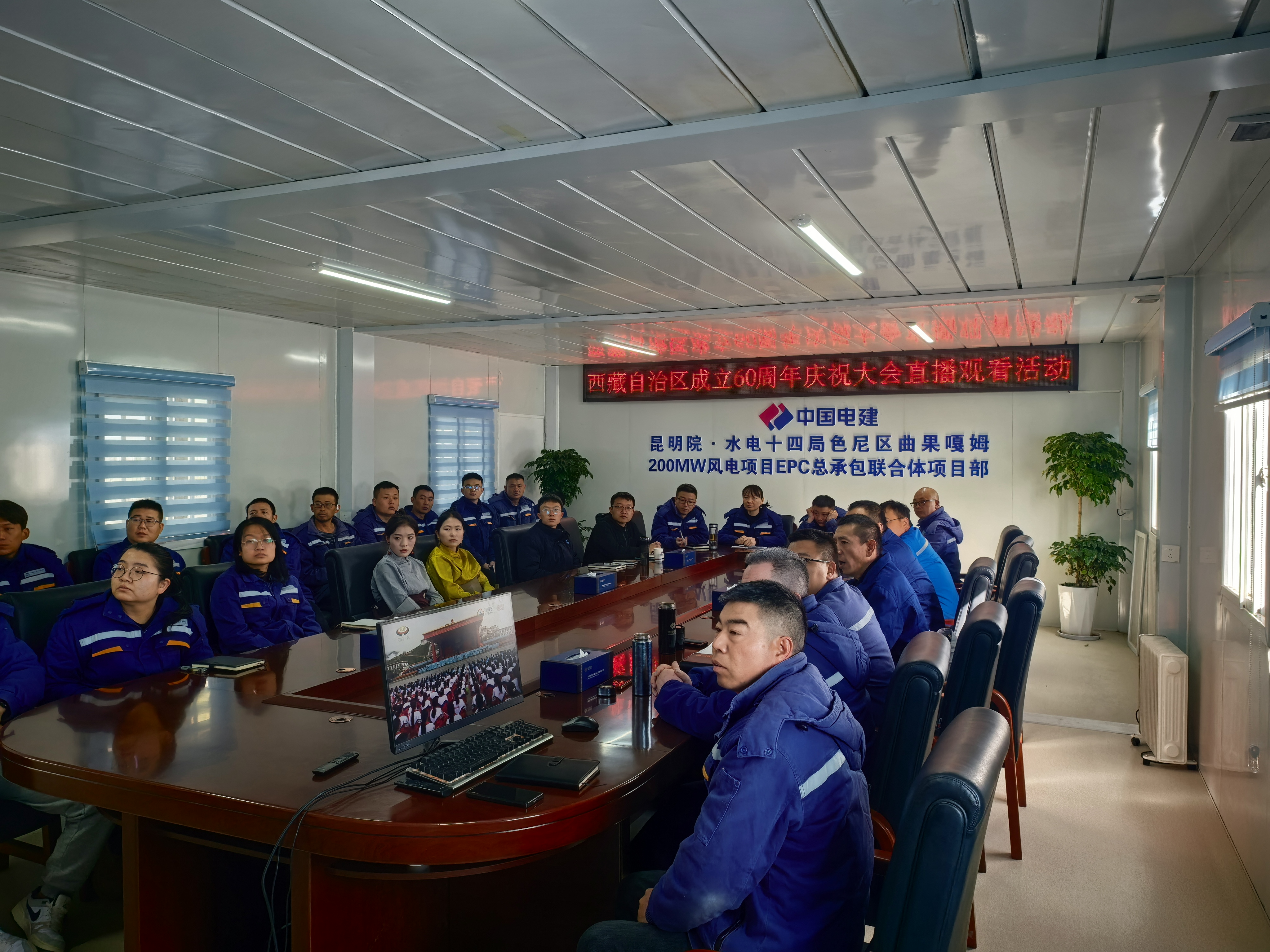 西藏開投色尼區(qū)曲果嘎姆200MW風電項目組織觀看西藏自治區(qū)成立60周年慶祝活動開幕盛況
