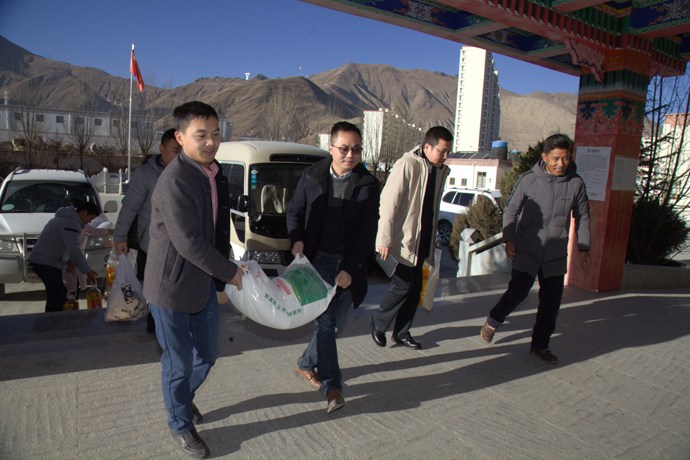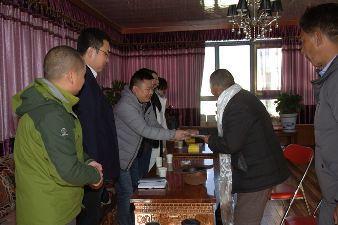 柳梧村村委達瓦書記對大家的到來表示熱烈的歡迎,對西藏開投集團組織開展這項工作表示贊賞。他說:“西藏開投集團是區管國有企業中第一家組織在職黨員進我們社區開展慰問的企業,意義重大,效果明顯。西藏開投集團成立雖晚,但在積極參與社會主義新西藏建設中邁的步伐很大,工作做的實在,體現了西藏開投集團的責任擔當。通過今天的活動,不但加深了雙方的熟悉和了解,而且也讓柳梧村的牧民百姓,尤其是受到西藏開投集團特殊慰問關懷的2戶老黨員更加感受到了黨的溫暖和關愛,更加會珍惜這個來之不易的幸福生活”。