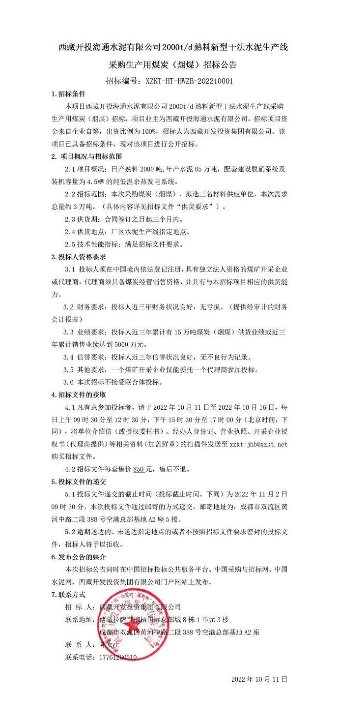 采購生產用煤炭(煙煤)招標公告