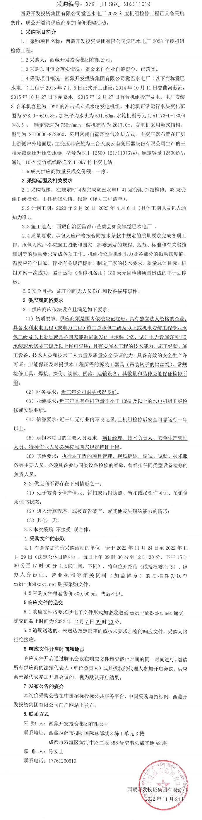 西藏開發(fā)投資集團有限公司覺巴水電廠2023年度