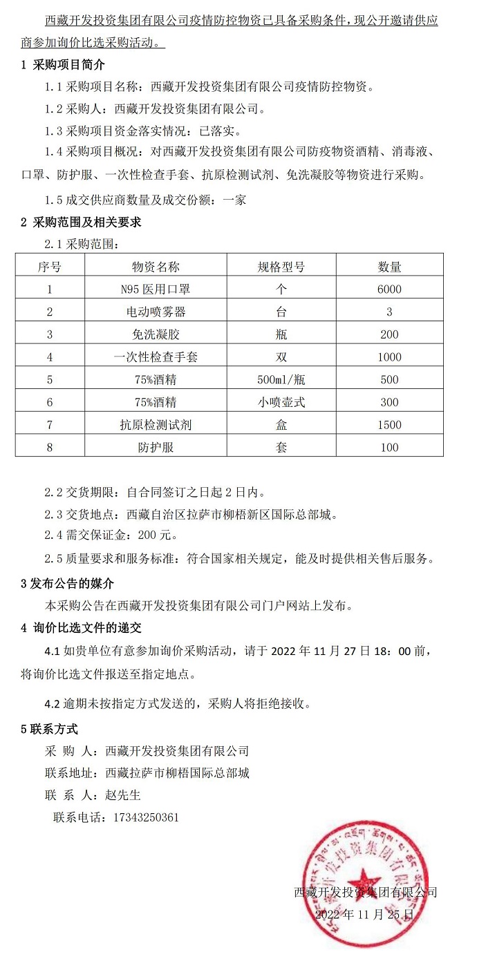 西藏開發投資集團有限公司疫情防控物資
