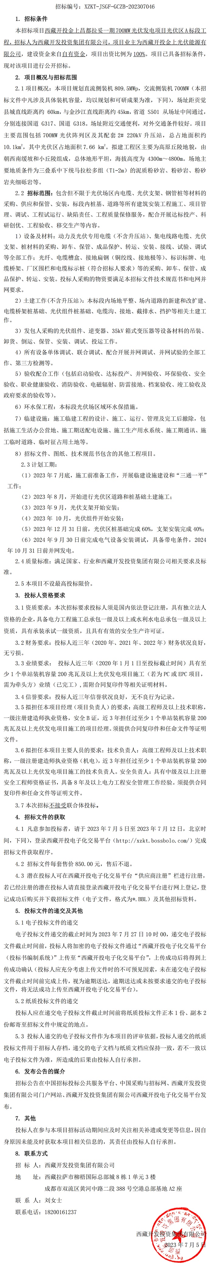 光伏區A標段工程招標公告