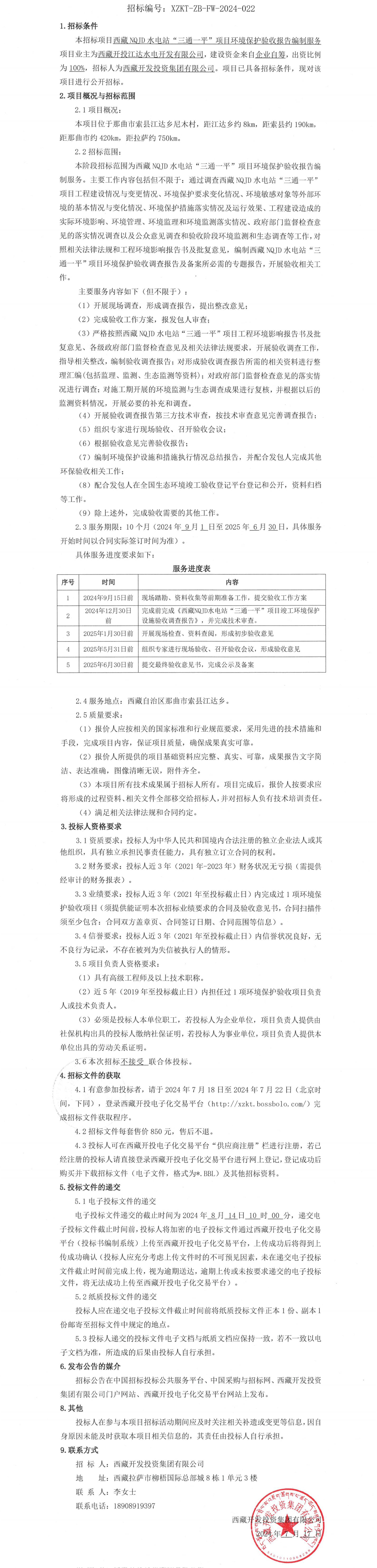 西藏NQJD水電站“三通一平”項(xiàng)目環(huán)境保護(hù)驗(yàn)收報(bào)告編制服務(wù)招標(biāo)公告